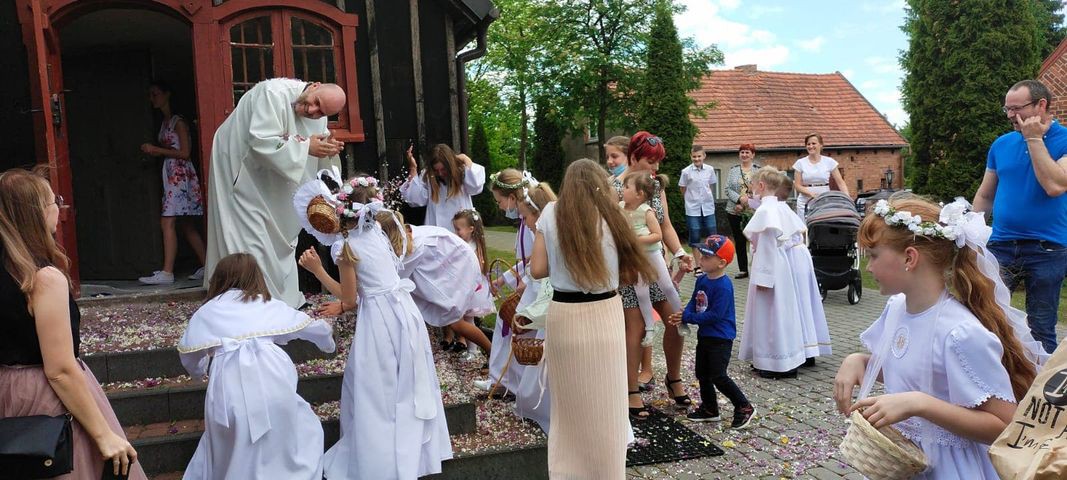 Wielkie podziękowanie dla wszystkich, którzy przyczynili się do przeżycia uroczystości: Strażakom i Policji; parafianom, za zbudowanie ołtarzy; Rodzicom i Dzieciom komunijnym; Liturgicznej Służbie Ołtarza; Karolinie W. i Zuzannie P. za pomoc przed i w trakcji procesji.