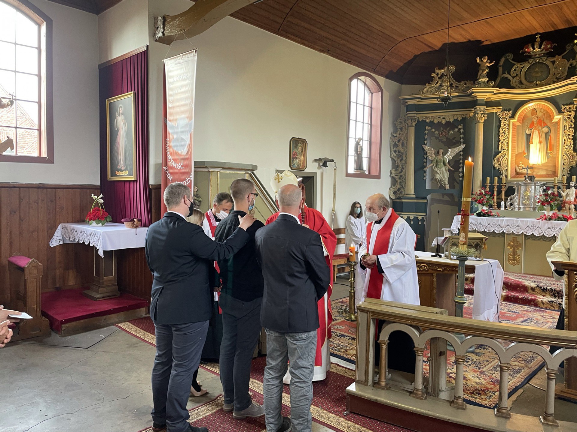 18 maja 2021 roku w naszej wspólnocie parafialnej odbyła się podwójna uroczystość udzielenia Sakramentu Bierzmowania. Z racji obowiązujących obostrzeń biskup Edward Dajczak podczas dwóch Eucharystii udzielił zgromadzonym w kościele parafialnym sakramentu. Podczas Mszy o godz. 16.00 sakrament został udzielonym osobom w ramach duszpasterstwa Służby Więziennej, a o godz. 18.00 naszym młodym parafianom. Wszystkim obdarowanym życzymy życia według daru Ducha.